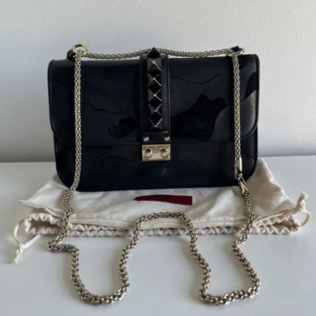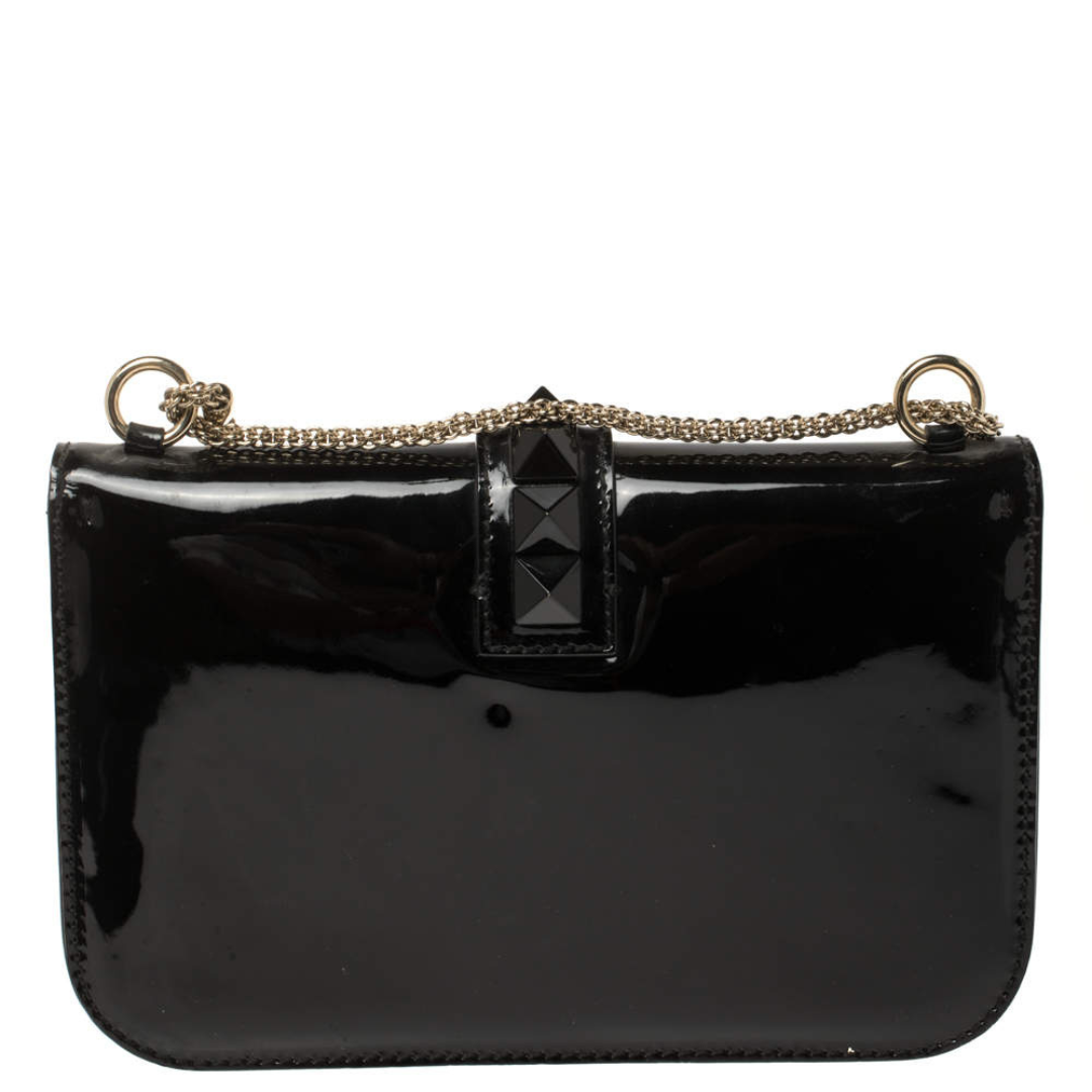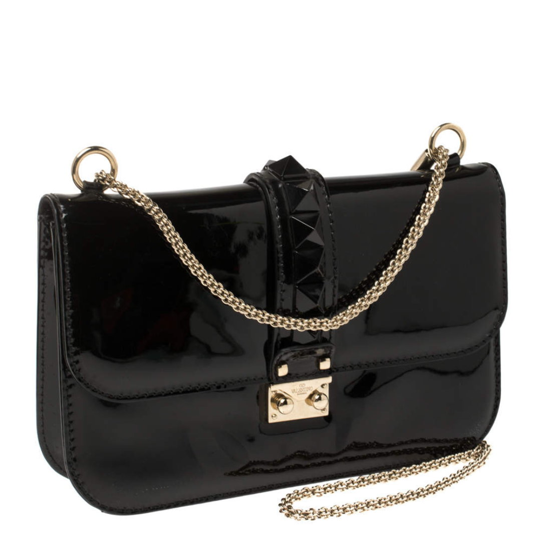 Bolsa Valentino Garavani Glam Lock Black, confeccionada em couro preto de alta qualidade. O modelo compacto e elegante conta com ferragens douradas e icônicos spikes, trazendo um toque de glamour. Possui fecho flap com dispositivo de encaixe seguro e alça de corrente ajustável, permitindo seu uso no ombro ou transversal. Com interior espaçoso, é perfeita para quem busca sofisticação e praticidade em uma só peça. Ideal para elevar qualquer look, do dia à noite.
