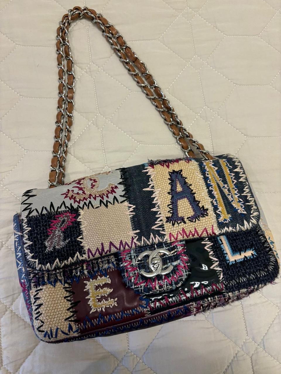 O design, que nunca será replicado, possui a clássica estrutura Flap com fecho giratório CC e alças de corrente prateada entrelaçadas com couro bege. O interior é forrado em tecido cinza, trazendo sofisticação e praticidade. Uma bolsa única, que reflete a criatividade inigualável da Chanel, ideal para o dia a dia, adicionando cor, estilo e personalidade ao seu look