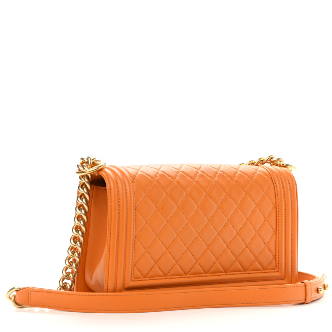 Esta é a autêntica CHANEL Lambskin Quilted Medium Boy Flap, em um sofisticado tom laranja queimado. Confeccionada em couro de...