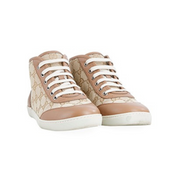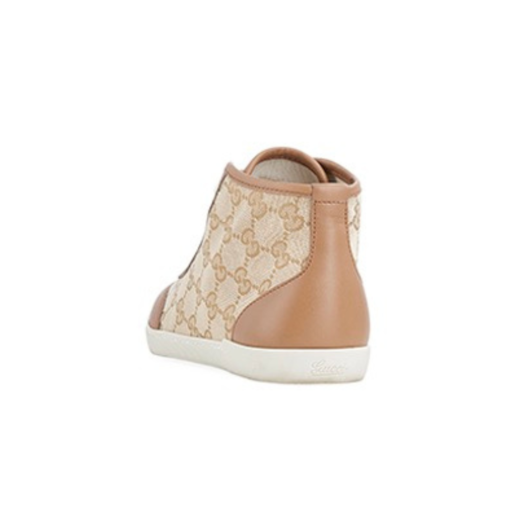 Esses tênis de cano alto com o icônico monograma Gucci GG são um destaque autêntico da linha. Forrados com couro branco macio, possuem detalhes em lona e couro no bico e na parte superior. Extremamente confortáveis, são um verdadeiro símbolo de estilo.