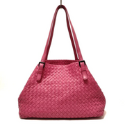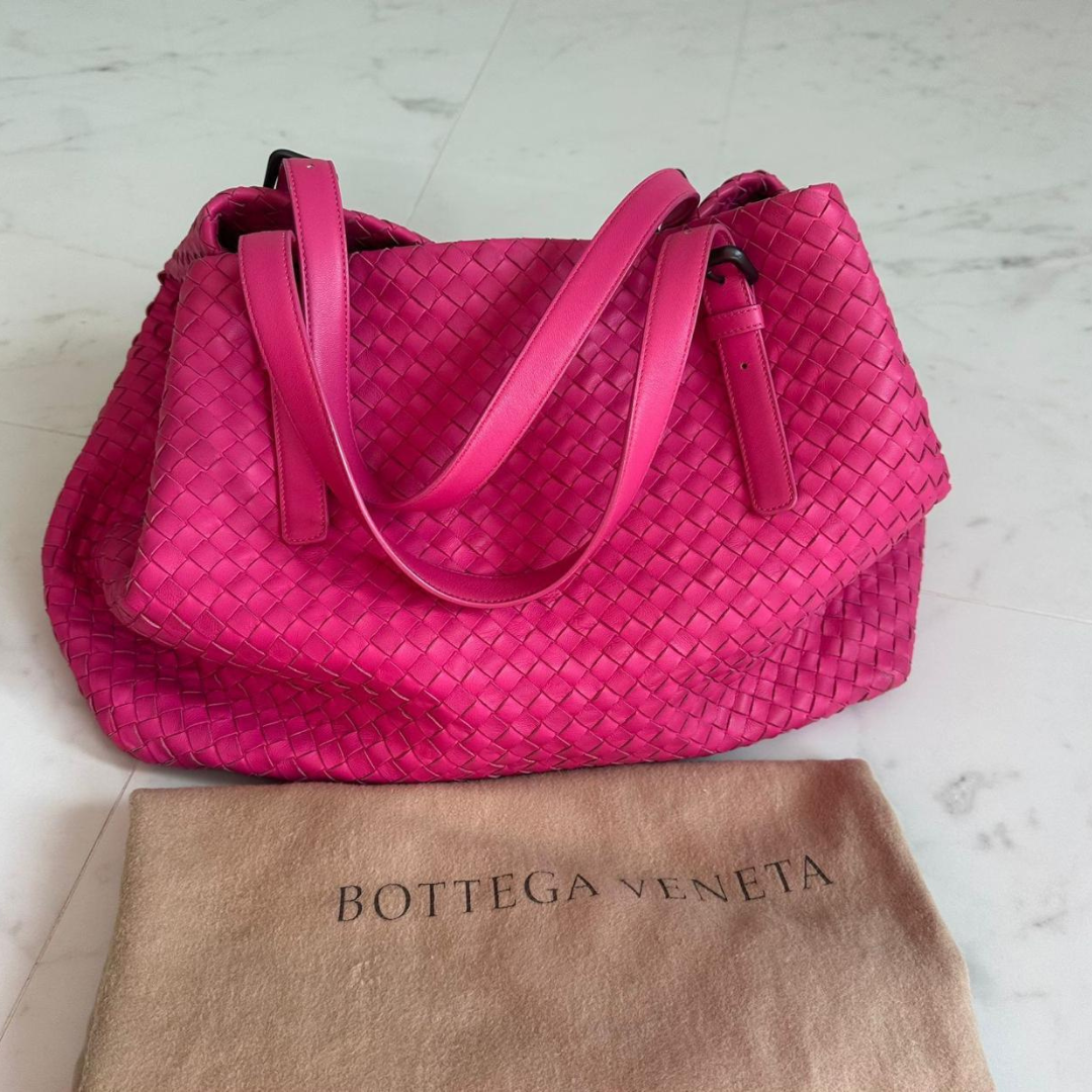 Bottega Veneta, apresenta o couro tecido exclusivo da Bottega com alças de couro planas ajustáveis e confortáveis e espaço suficiente...