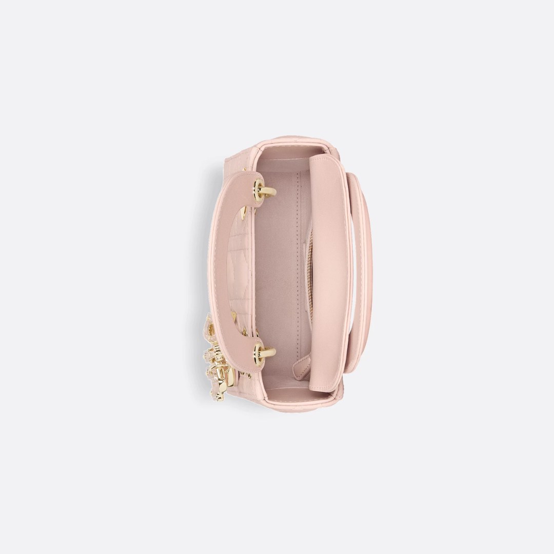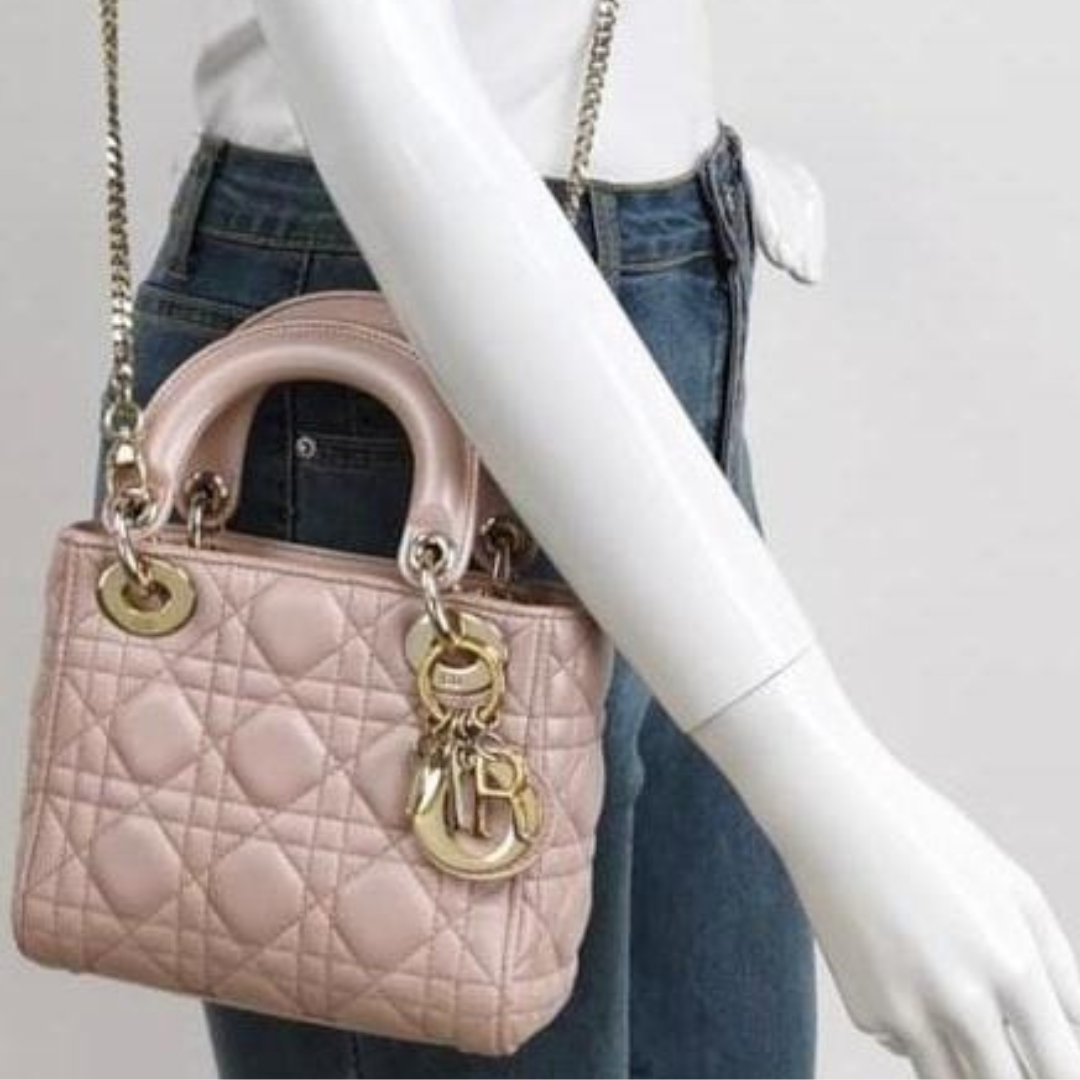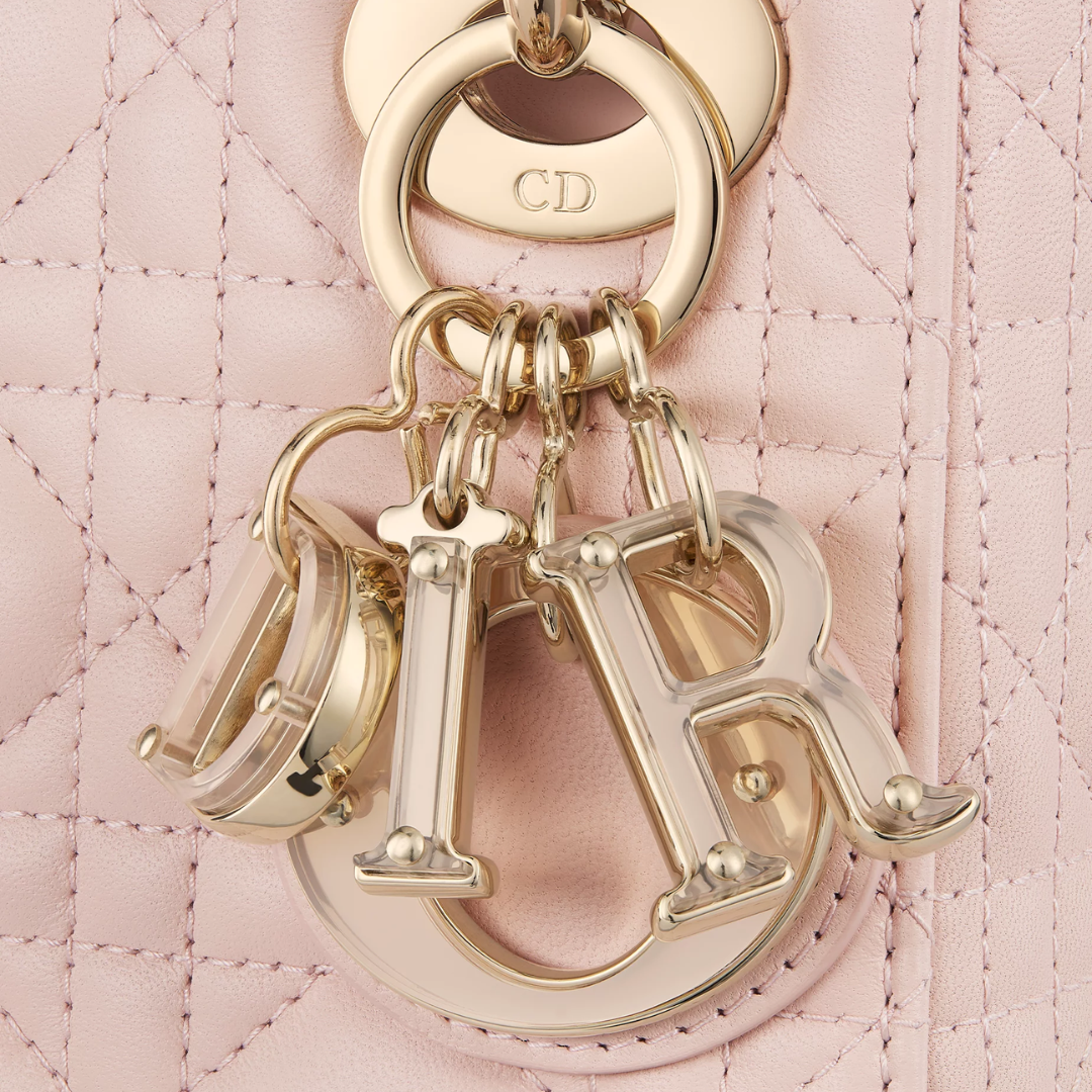 A Bolsa Lady Dior é a expressão máxima de elegância e sofisticação da Maison Dior. Confeccionada em pele de cordeiro bege-areia, apresenta o icônico pesponto Cannage que cria uma textura acolchoada e luxuosa. Os berloques metálicos D.I.O.R. com acabamento dourado-claro adicionam um toque de classe. Com uma alça de ombro fina e removível em couro, esta bolsa média pode ser utilizada tanto na mão quanto transversalmente, oferecendo versatilidade e um charme atemporal.