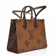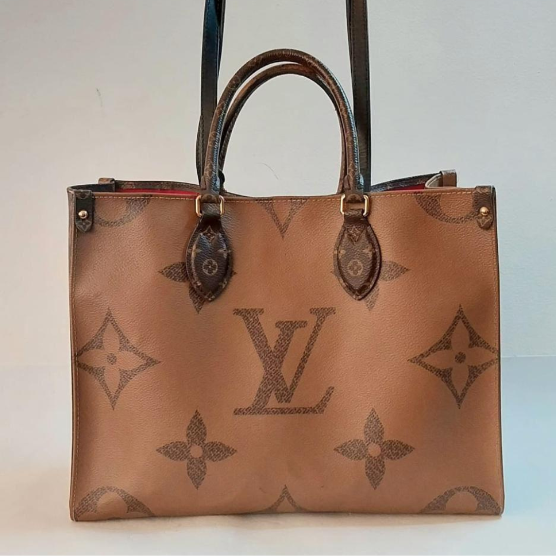 Bolsa Louis Vuitton Onthego GM, confeccionada em canvas Monogram Giant e Monogram Reverse, unindo estilo e versatilidade.